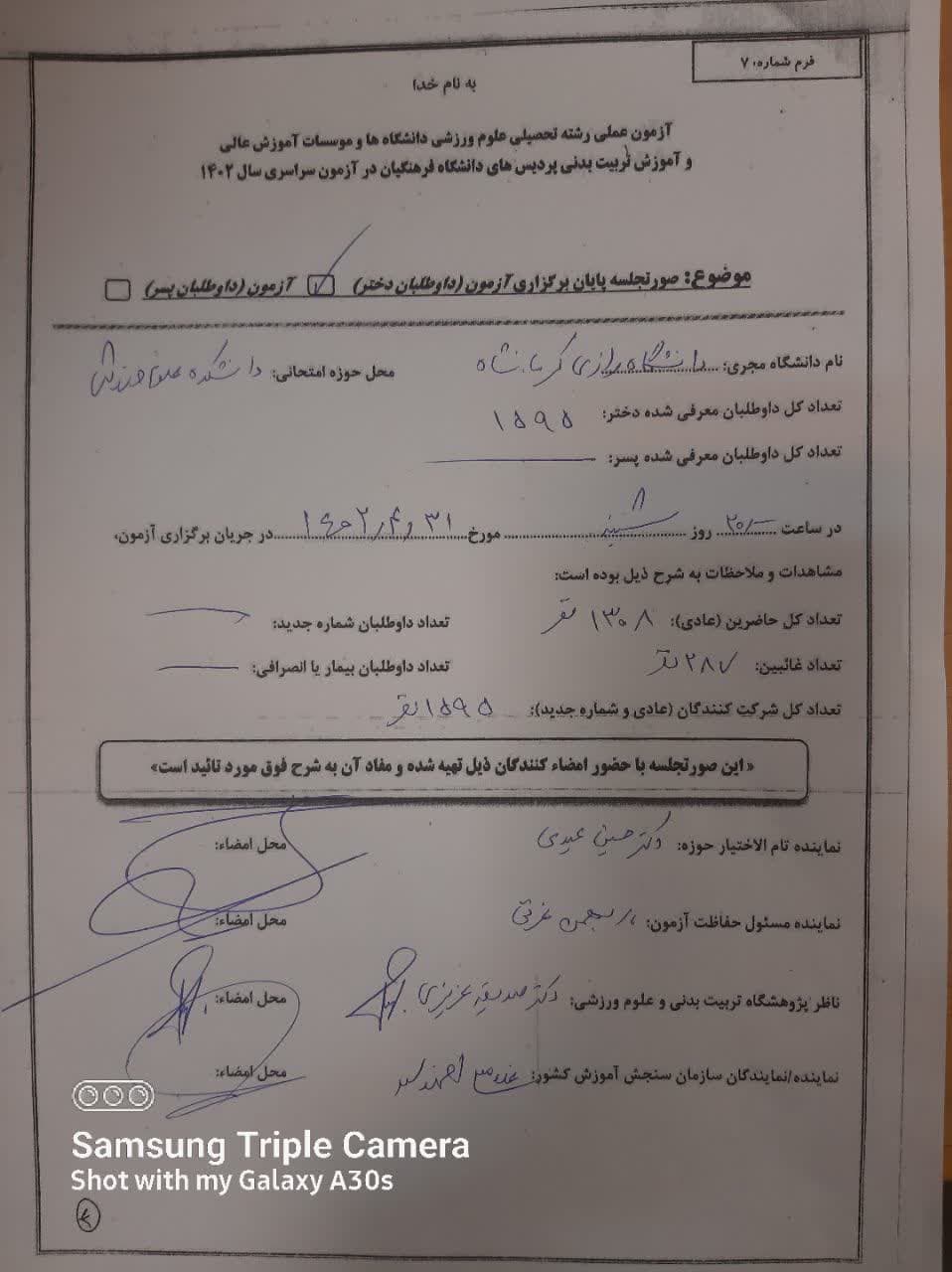 اتمام آزمون عملی رشته علوم ورزشی سال 1402