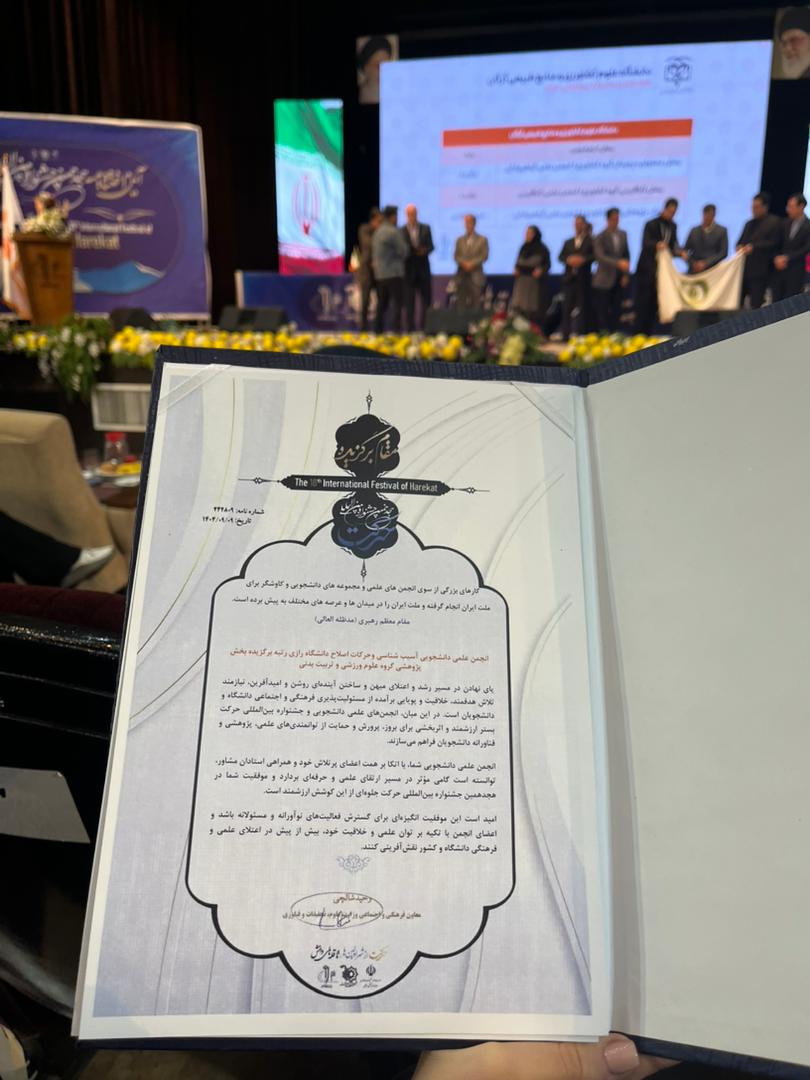 موفقیت انجمن علمی آسیب‌شناسی ورزشی و حرکات اصلاحی دانشگاه رازی در هجدهمین جشنواره بین‌المللی حرکت