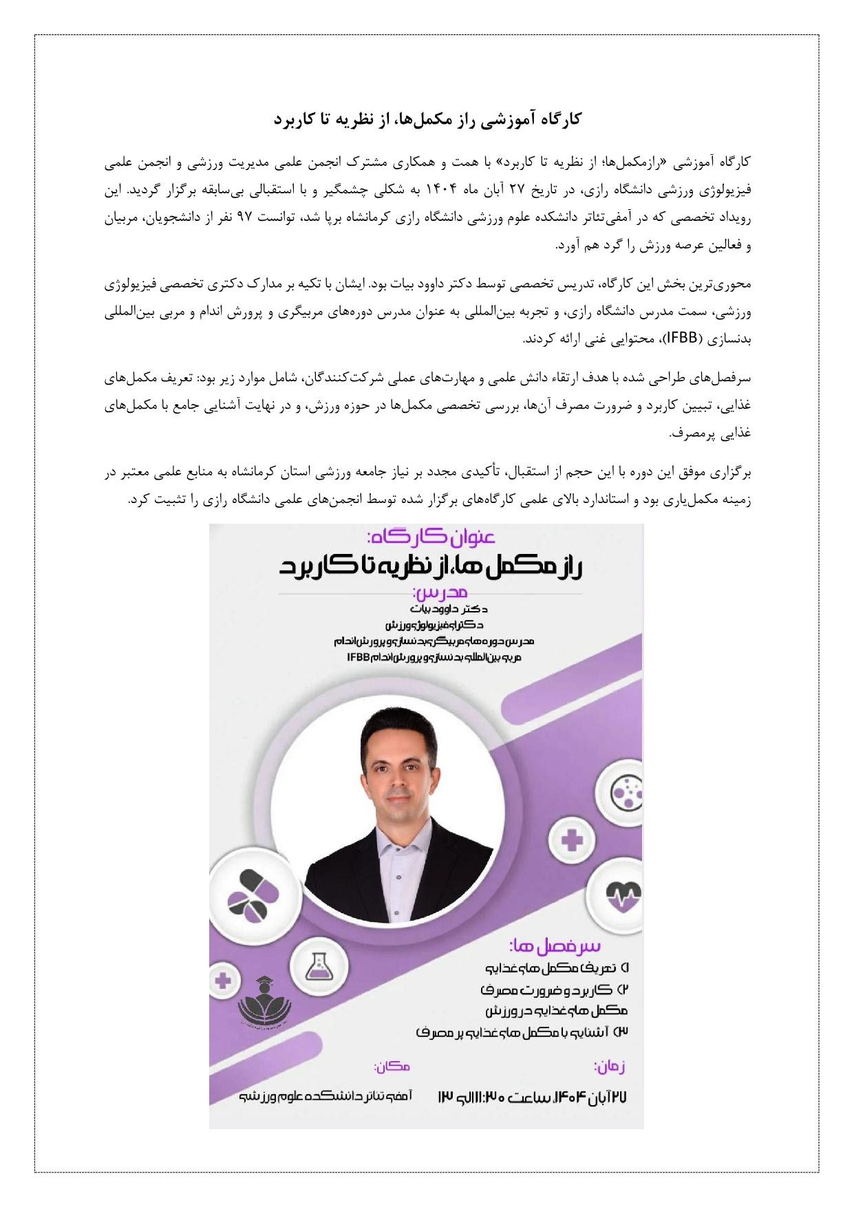 کارگاه آموزشی راز مکمل ها از نظریه تا کاربرد - دانشکده تربیت بدنی